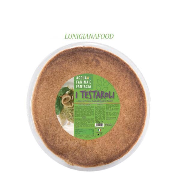 Testarolo confezionato 420 gr acqua farina fantasia Ingredienti: Farina di grano tenero, acqua, sale.